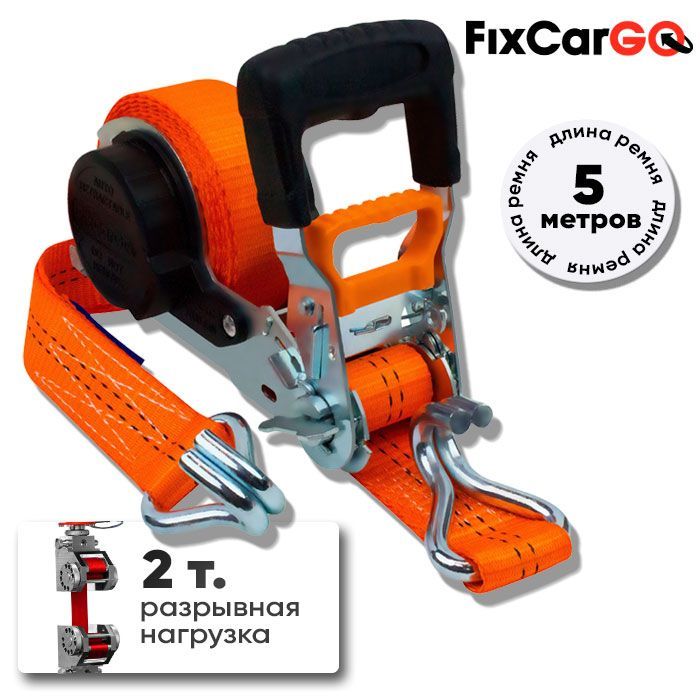 -Самозатягивающийся ремень крепления груза 35 мм, 5 м, с двойными крюками